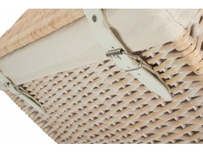 Full white wash finish willow - white faux leather - integral handles - removable cotton lining